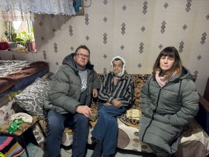 Nicolai ist 60 Jahre alt und hat Krebs. Er hört schlecht und kann aufgrund einer Operation am Hals nicht sprechen. Seine Frau ist seine Hauptpflegeperson. Er braucht Windeln und viele Medikamente, die teuer sind. Als wir im Dezember zum ersten Mal mit einem Lebensmittelpaket zu Besuch kamen, schlief Nicolai aufgrund seiner Medikamente und Tatiana weinte die ganze Zeit. Sie machte sich Sorgen, wie sie den Winter über warm bleiben könnten, da sie kein Geld hatten, um Brennholz zu kaufen. Der Herr wusste einen Weg, und zwei Wochen später konnten wir ihnen genug Brennholz liefern, um den Winter zu überstehen. Diesmal hatte Tatiana Tränen der Freude und Dankbarkeit in den Augen, als wir ihr erzählten, dass der Herr ihre Situation gesehen und ihnen das Brennholz gegeben hatte.