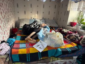Menschen wie diese stehen in Moldawien vor sehr schwierigen Entscheidungen. Geben sie ihr geringes Einkommen für Medikamente, Lebensmittel oder Brennholz aus? Als wir sie besuchten, trugen beide mehrere Schichten Kleidung, und Victor lag mit Decken zugedeckt und einer Mütze auf dem Kopf im Bett.